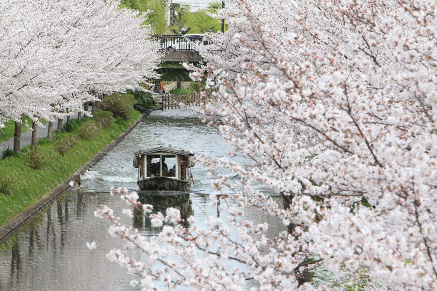 | 作品説明 | 満開の桜の下、宇治川派流を遊覧する屋形船「十石舟」=京都市伏見区 |