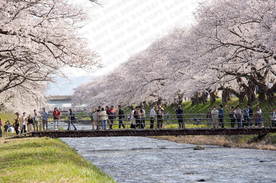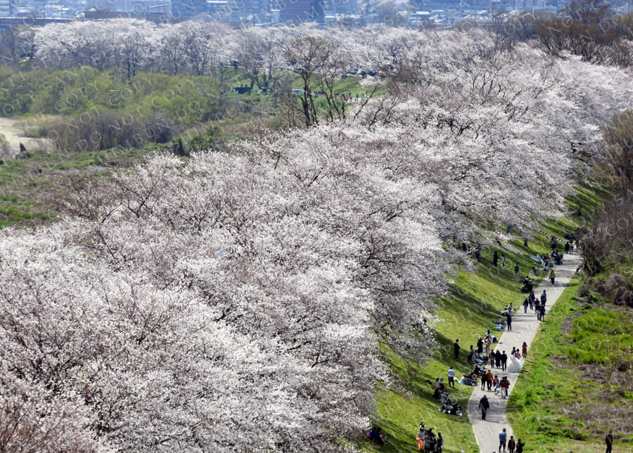 | 作品説明 | 見頃を迎えた京都・背割堤のソメイヨシノ=京都府八幡市 |