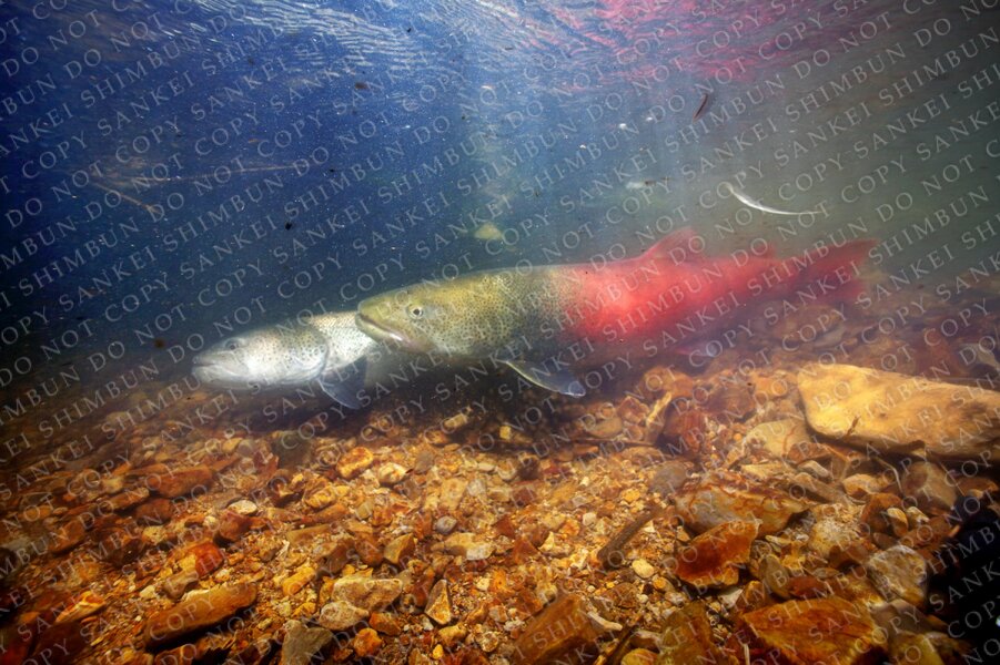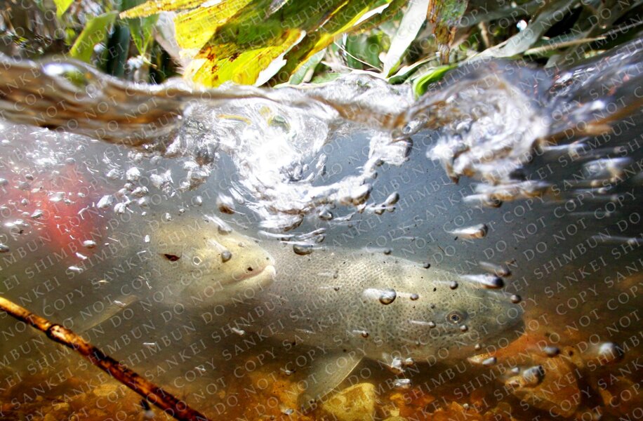| 作品説明 | 産卵のため雄雌のペアになったイトウ=北海道北部■■■東京■■■ |