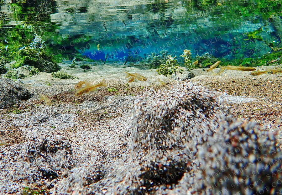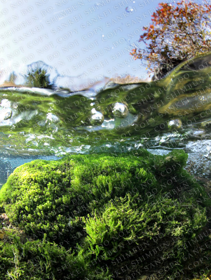 | 作品説明 | 透明度が高く美しい景色の広がる山吹水源。毎分30トンの水が湧き出る=熊本県産山村 |