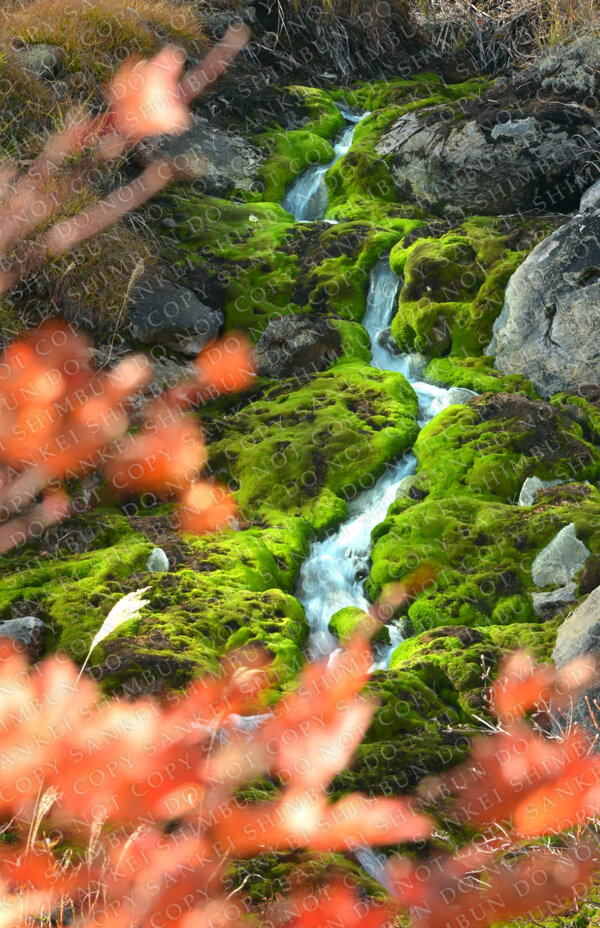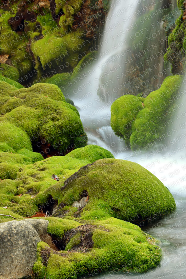 | 作品説明 | 水の流れを包むように生えるもこもことしたチャツボミゴケ=群馬県中之条町のチャツボミゴケ公園■■■東京■■■ |