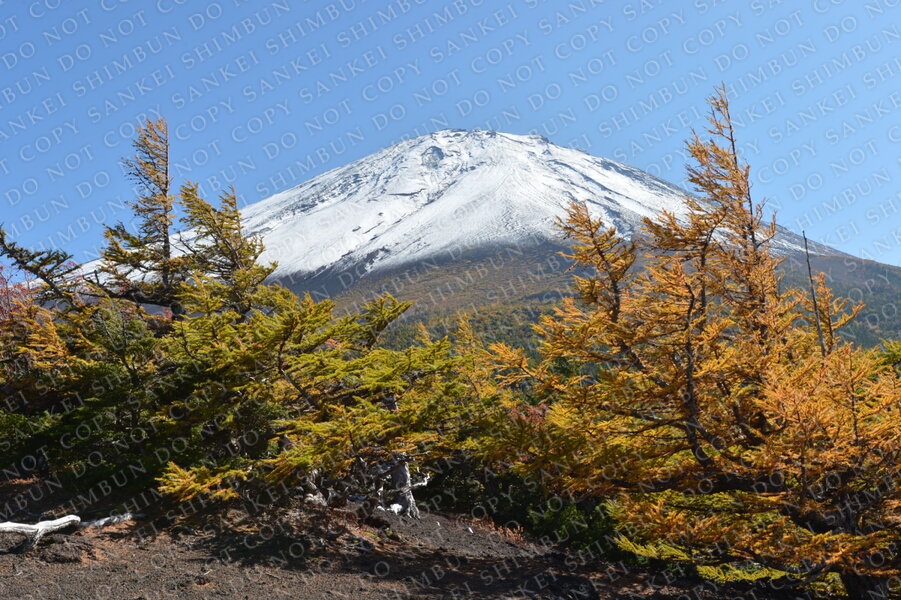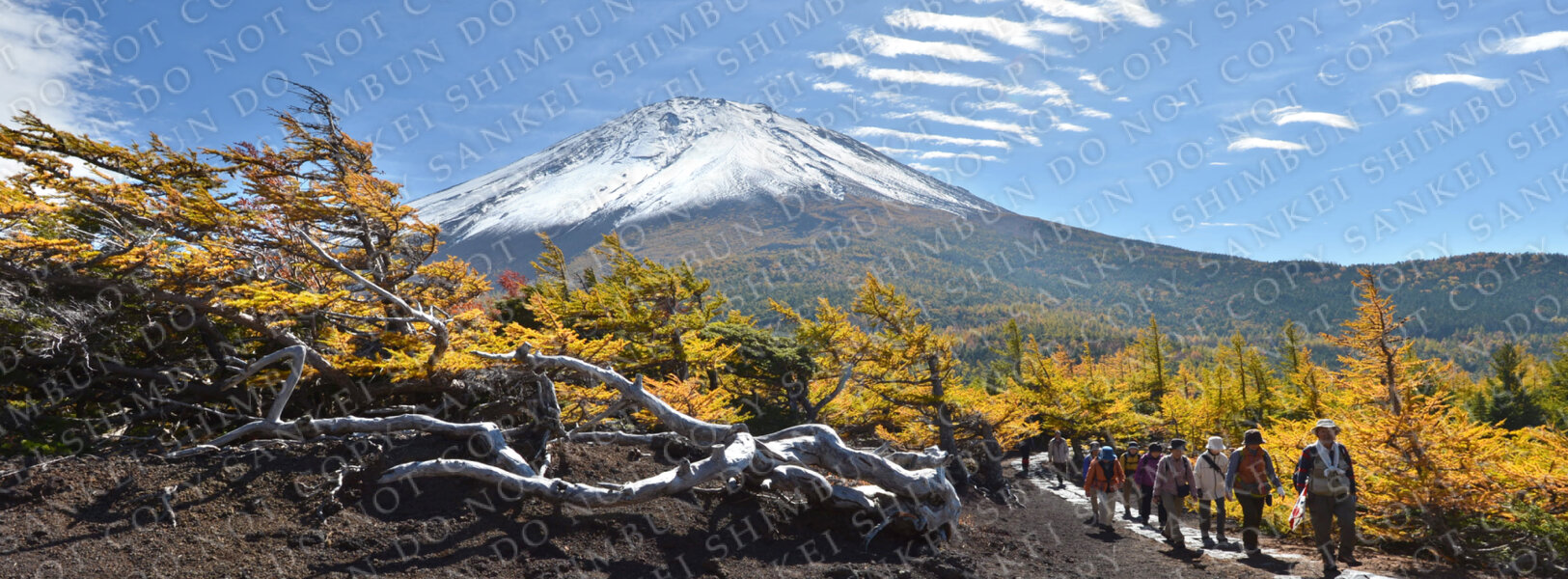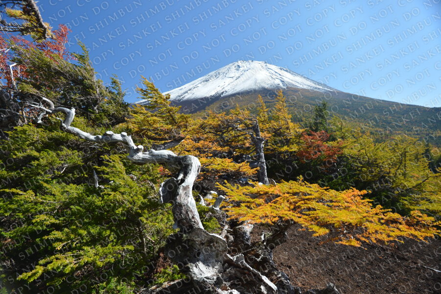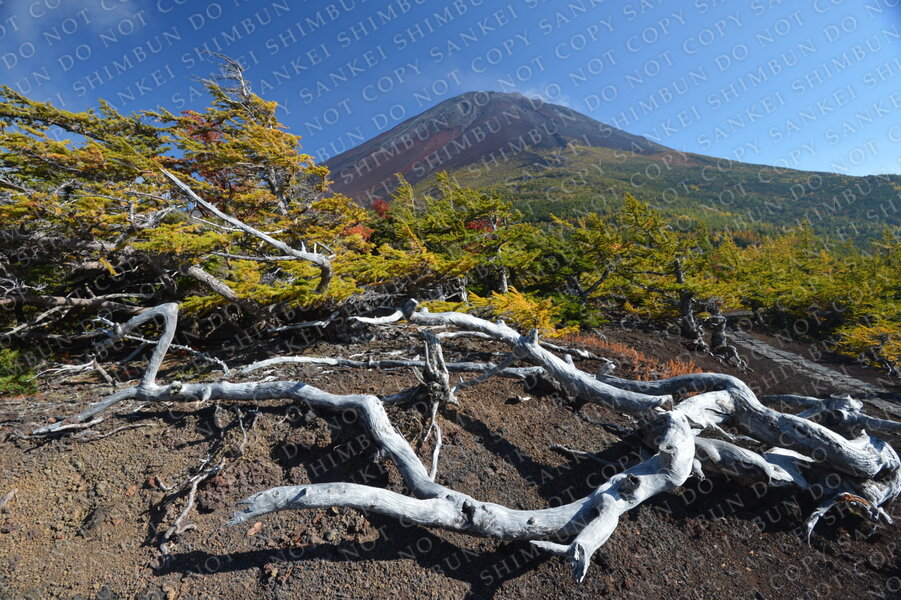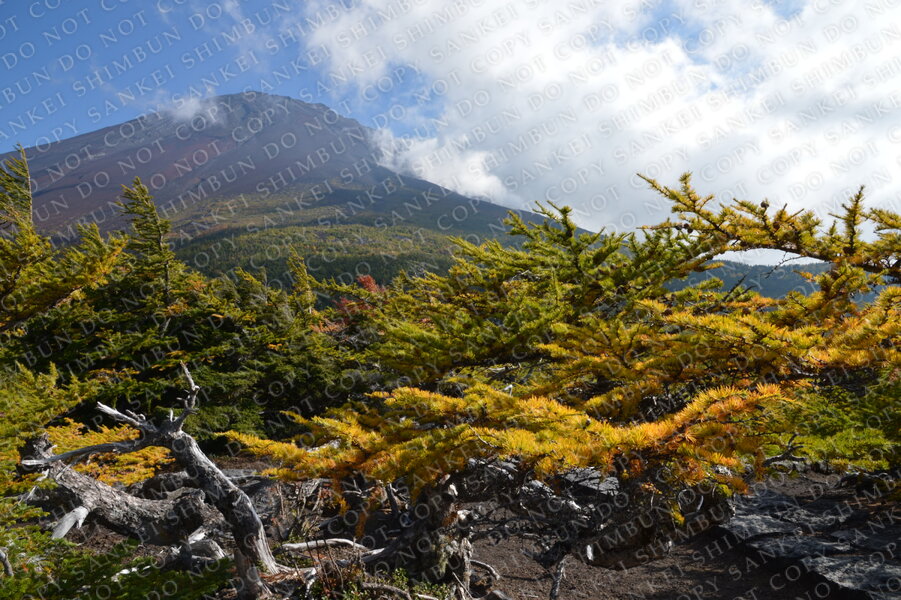 | 作品説明 | 富士山5合目にある奥庭自然公園「天狗の庭」で黄葉する、強風や雪の重みでねじ曲がったカラマツ 山梨県・鳴沢村■■■東京■■■ |