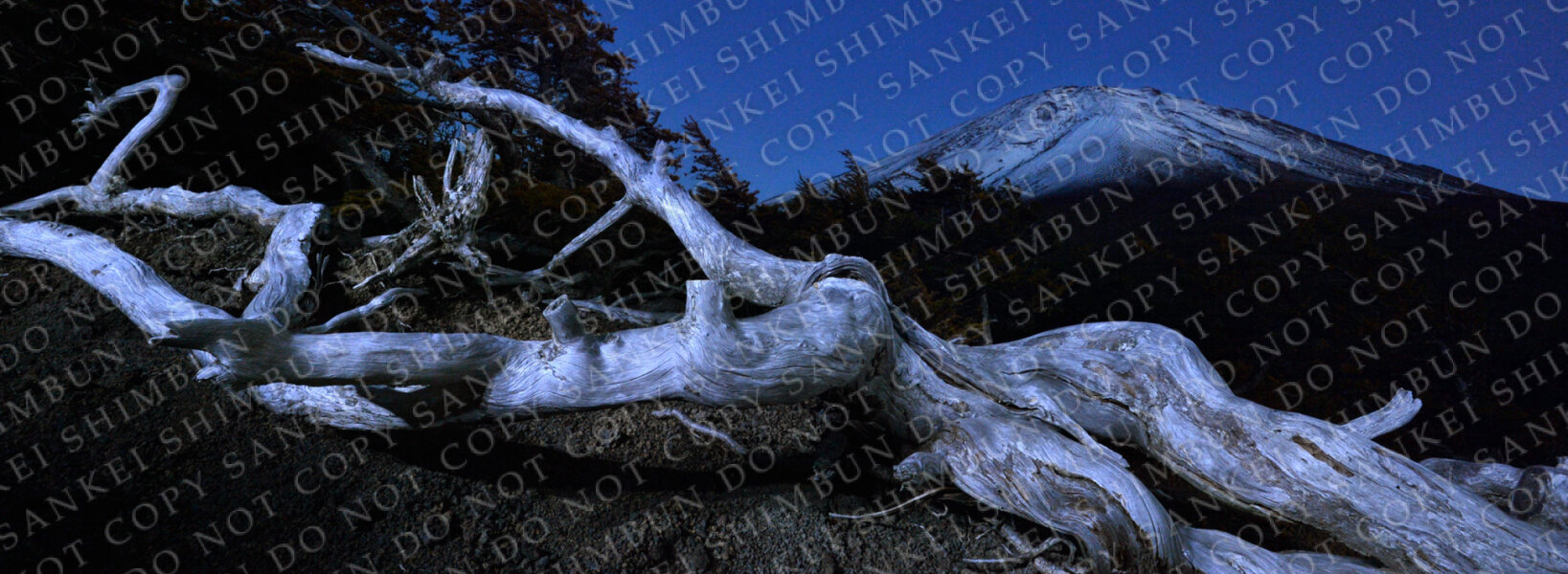 | 作品説明 | 富士山5合目にある奥庭自然公園「天狗の庭」。樹齢100年を超えるカラマツやコメツガは、激しい風雪にさらされ地をはうように育つものも 山梨県・鳴沢村■■■東京■■■ |