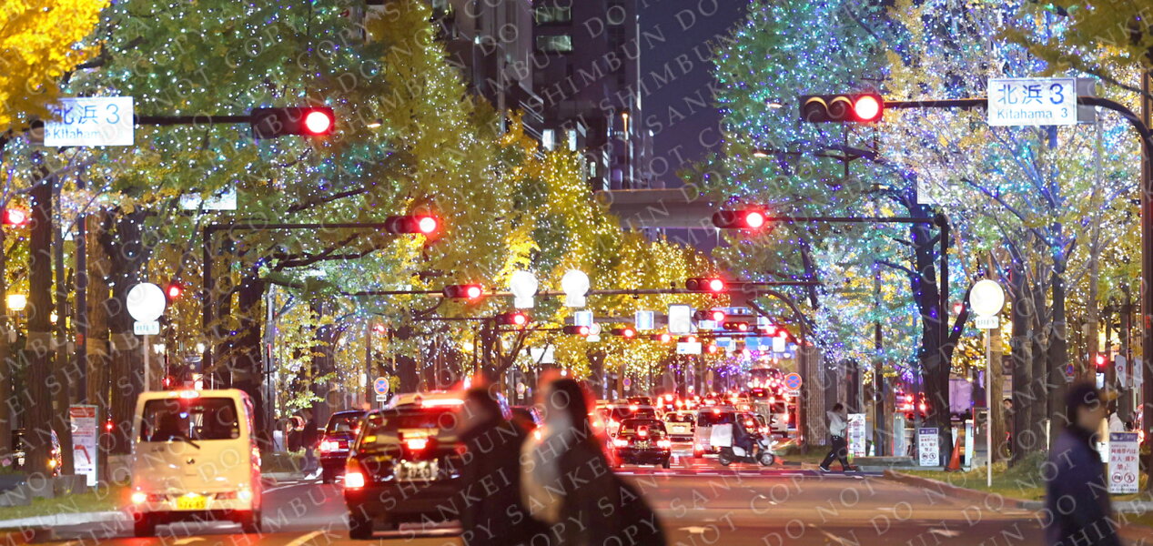 | 作品説明 | 木々に色とりどりのあかりが灯る御堂筋イルミネーション=大阪市中央区 |