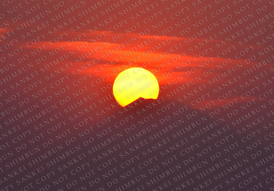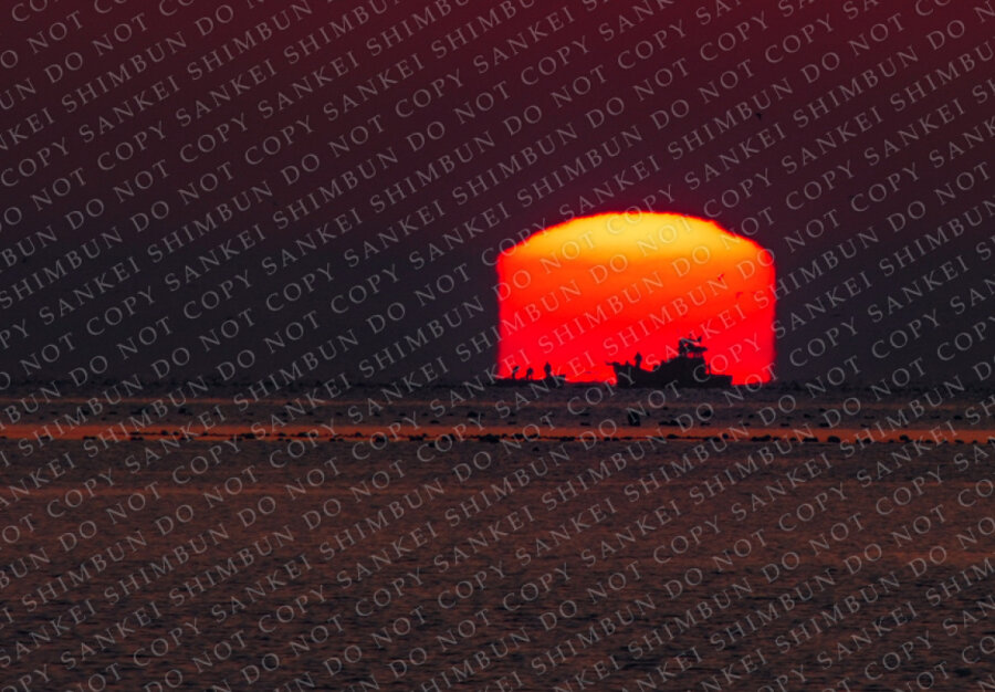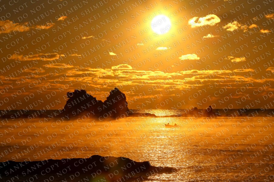 | 作品説明 | 富山湾北西部の氷見海岸から見る水平線に現れた「四角い太陽」=富山県氷見市 |