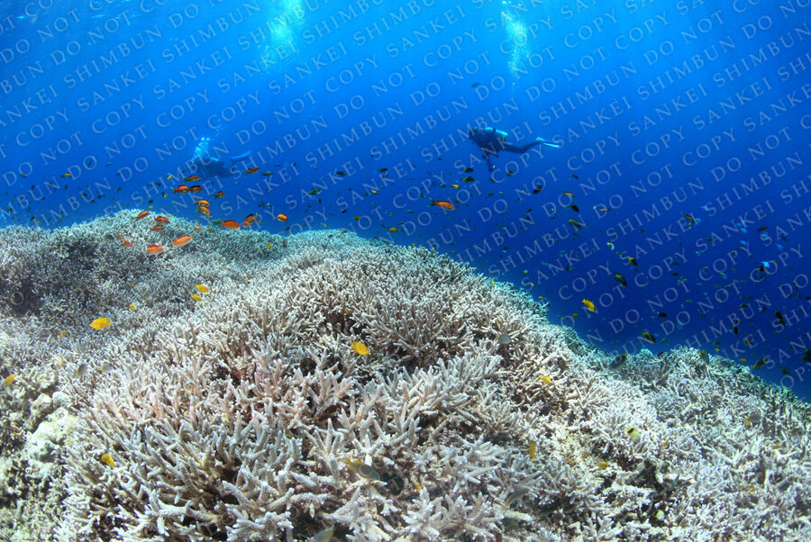 | 作品説明 | 夏の光線が注ぐ宮古島の海。サンゴが幾重にも覆う八重干瀬(やびじ)=沖縄県宮古島市 |