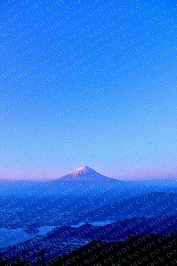 | 作品説明 | 明け方ほんのりと赤く染まる富士山=山梨県笛吹市 |