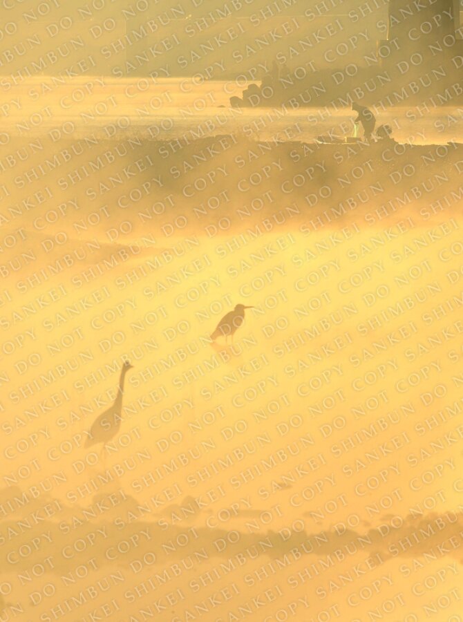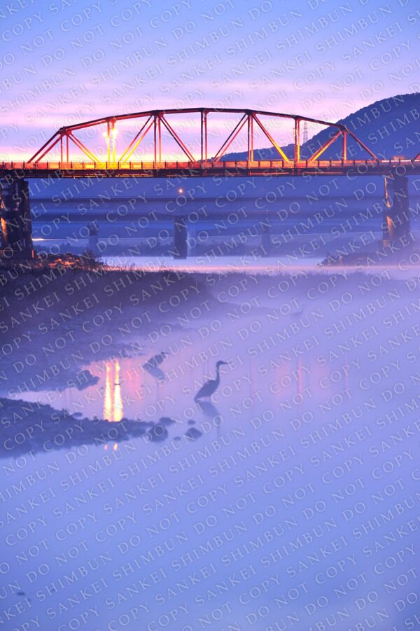 | 作品説明 | 明け方の四万十川では、川の中にサギのたたずむ姿が見られた=高知県四万十市 |
