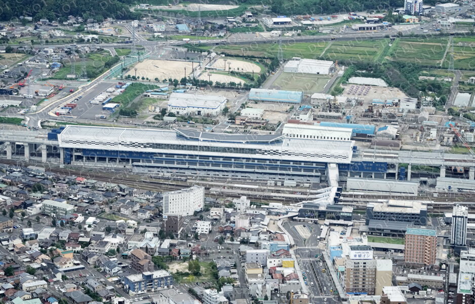 | 作品説明 | 北陸新幹線延伸開業を控えた敦賀駅の新幹線ホーム=福井県敦賀市(本社ヘリから) |