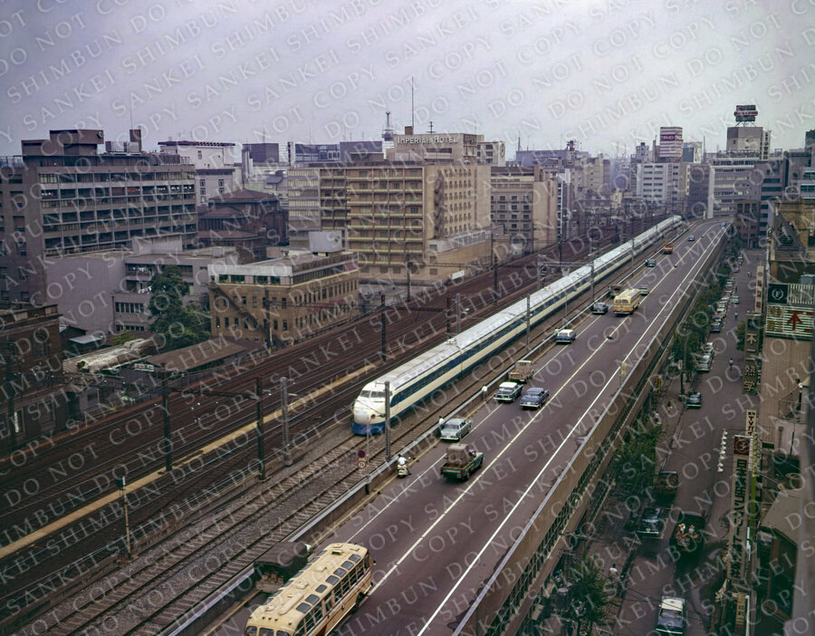 | 作品説明 | 昭和39年ごろ、東京・西銀座付近を走行する東海道新幹線=東京都中央区 |